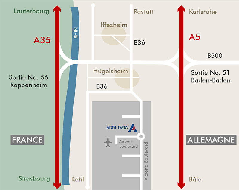 • Les places de parking visiteurs ADDI-DATA sont en face de l'entrée principale